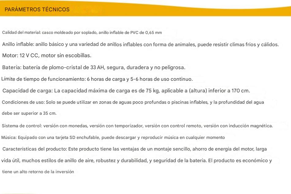 Marca:Fwu-longModelo: FLBB-10001Motor: 12 voltios, sin cepilloBatería: 12v 33AHPeso del paquete: 33 kg (incluye batería)Tamaño del paquete: 126*68*33cmCapacidad: peso máximo de carga 75 kg